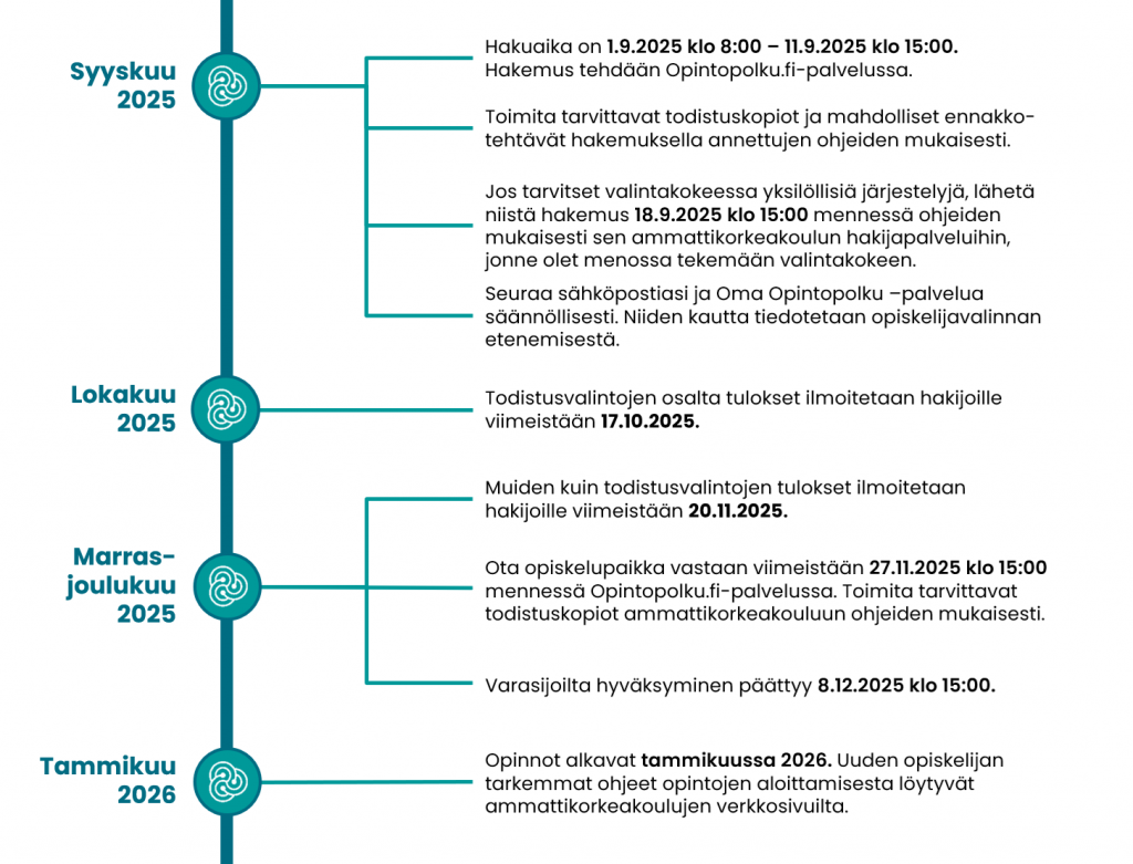 Yhteishaun ja valintojen aikataulu